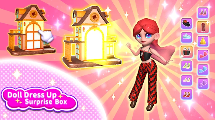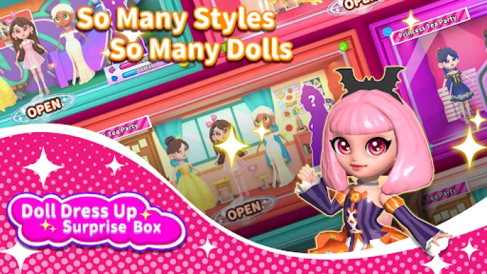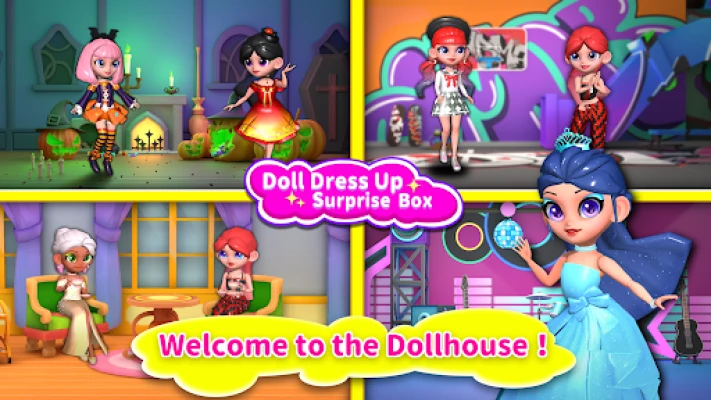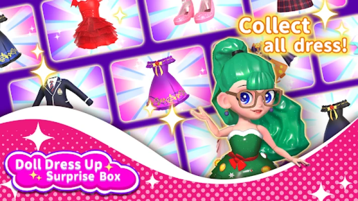 Doll dress up: Surprise blind box collects dolls and costumes of different themes by opening blind boxes, and by dressing them in the correct clothes, you can get points to redeem new blind boxes, as well as super surprise big blind boxes. Open different doll display scenes and watch your favorite dolls play in the scenes. Theme scene: The game has multiple themed scenes where you can watch the dolls play in the scenes. Parkour mini-game: Dress up the doll in beautiful clothes and participate in a tense and fun parkour game.
