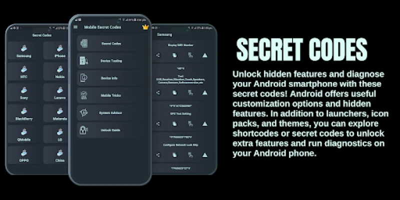 DISCLAIMER: The functionality of secret codes in this app is proposed for qualified users. Any hardware or software damage we are not accountable for that while performing some actions through running these secret codes. We will not accountable for the use or misuse of this information, including loss of data or software, hardware damage. So, use it at your own risk.