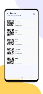 My Codes provides quick and easy access to your QR codes directly from your Wear OS device. No more forgetting your loyalty cards, boarding passes, social media handles, or other useful codes — everything is on your wrist.