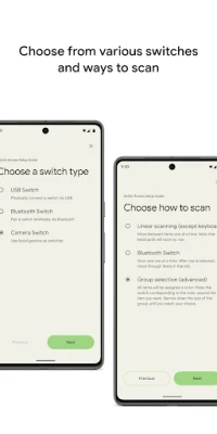 Control your phone or tablet using switches or the front camera. You can use switches to select items, scroll, enter text, and more.